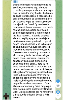 Gracias a esta formación, he acompañado a muchas personas a superar sus miedos y volver a disfrutar de la conducción con seguridad y libertad.